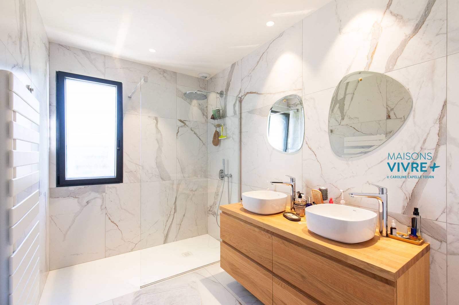 Nous avons construit cette belle maison contemporaine dans un petit lotissement à la limite de l'Ain et du Rhône, près de Genay. En collaboration...